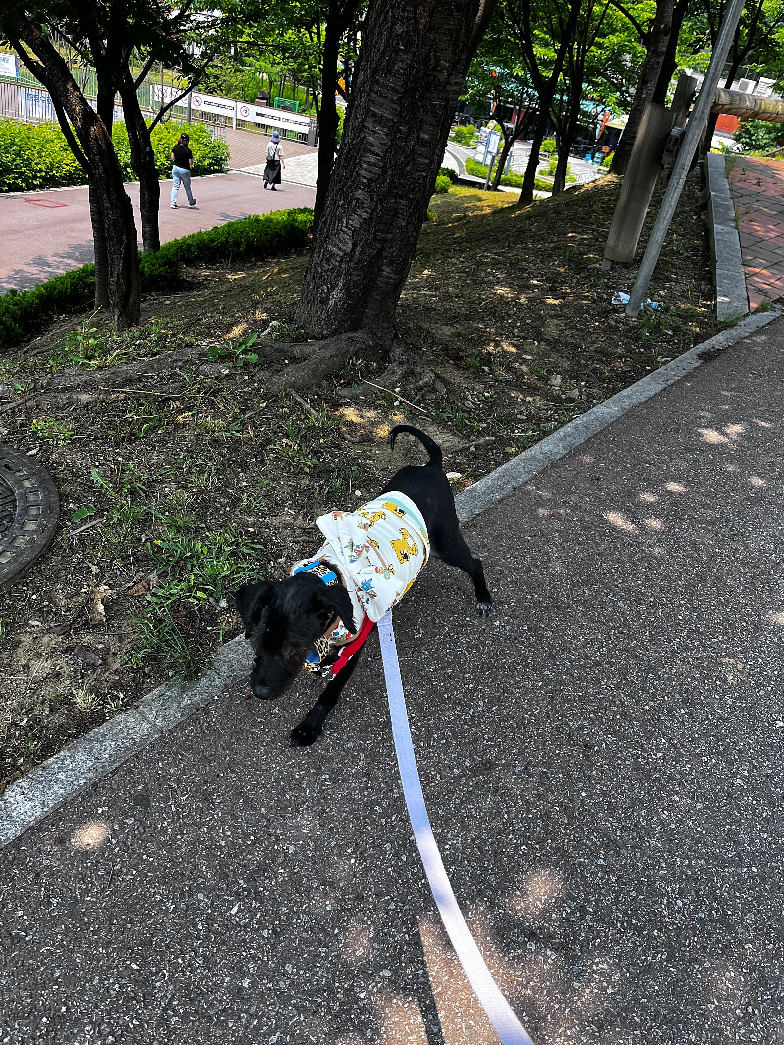 목과 몸사이즈에 맞는 목줄, 하네스, 연결줄로 안전하게 산책하는 셰도우