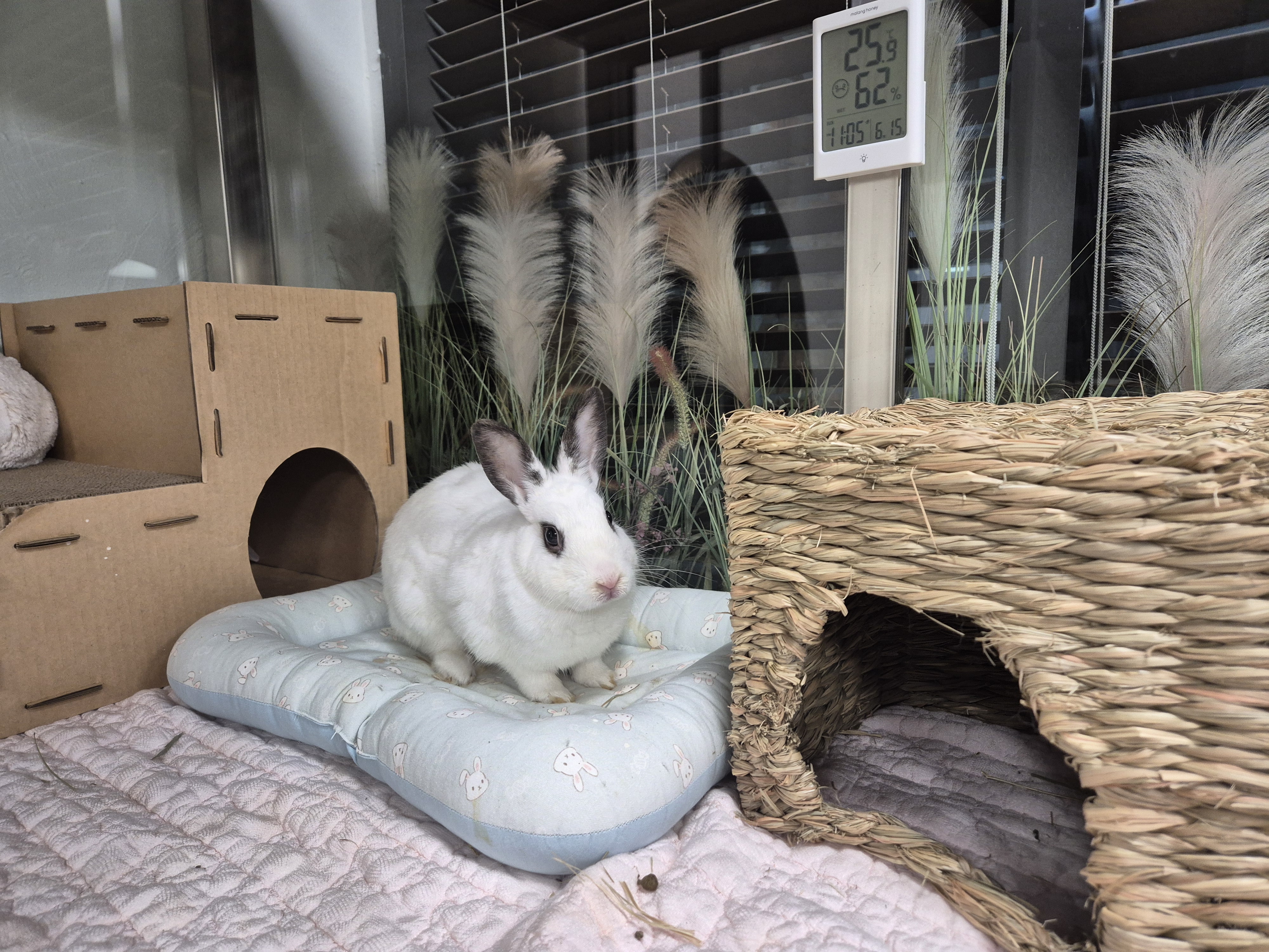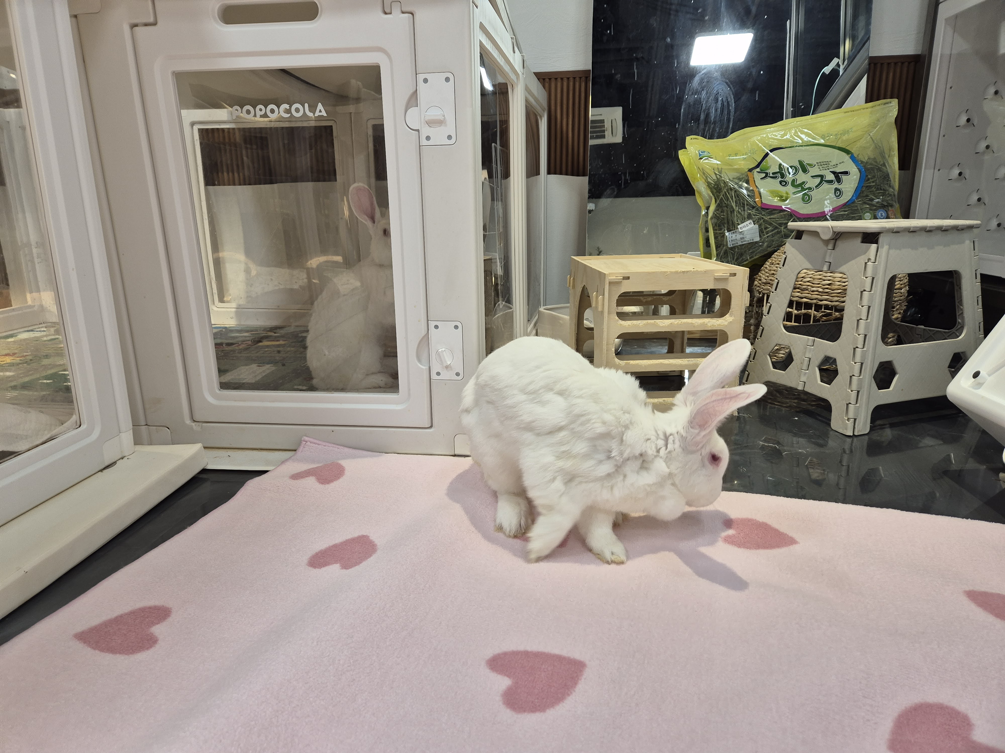 혼자 있을때는 편안한 자세로 잘있고, 주변 구조물 위나 안으로 들어가는 등 호기심이 있는 새식구