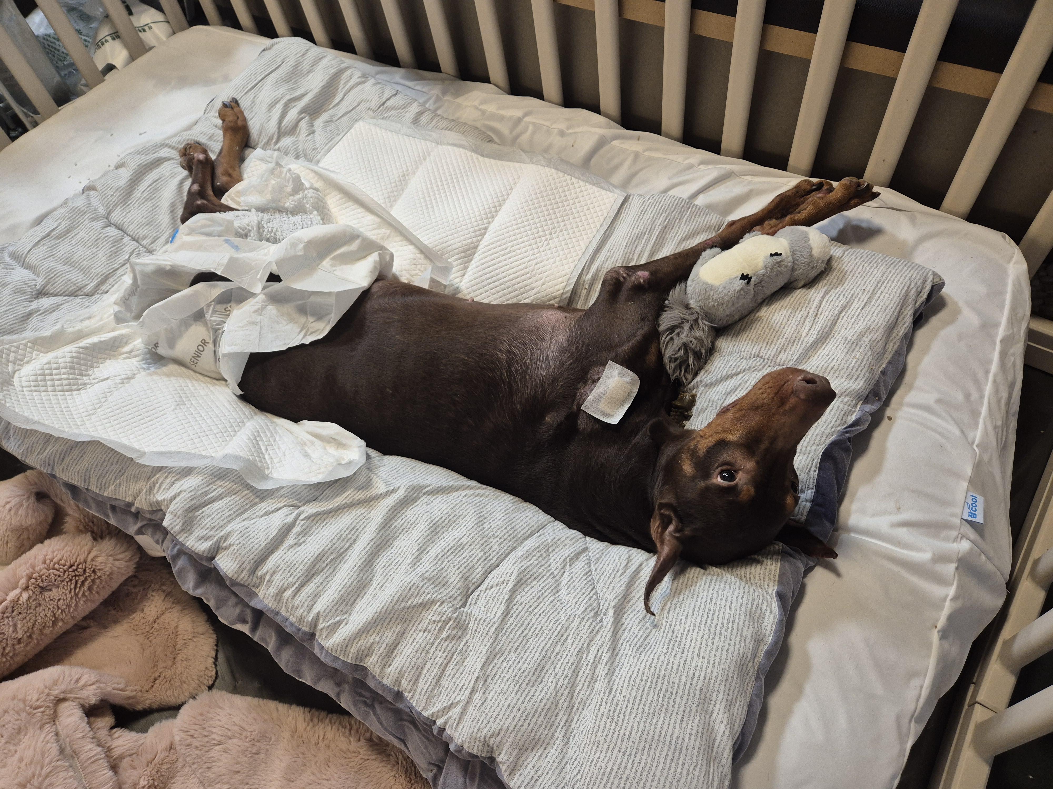 오른편으로 눕는걸 좀 더 불편해 하고 왼편으로 누워야 약간 앉아있을수도 있지만 왼편의 어깨와 팔, 다리의 관절에 압박으로 인한 탈모있어 왼편의 압박부위에 대해 패딩을 고민하고 왼쪽으로 누워있게 하는게 좋을것 같음